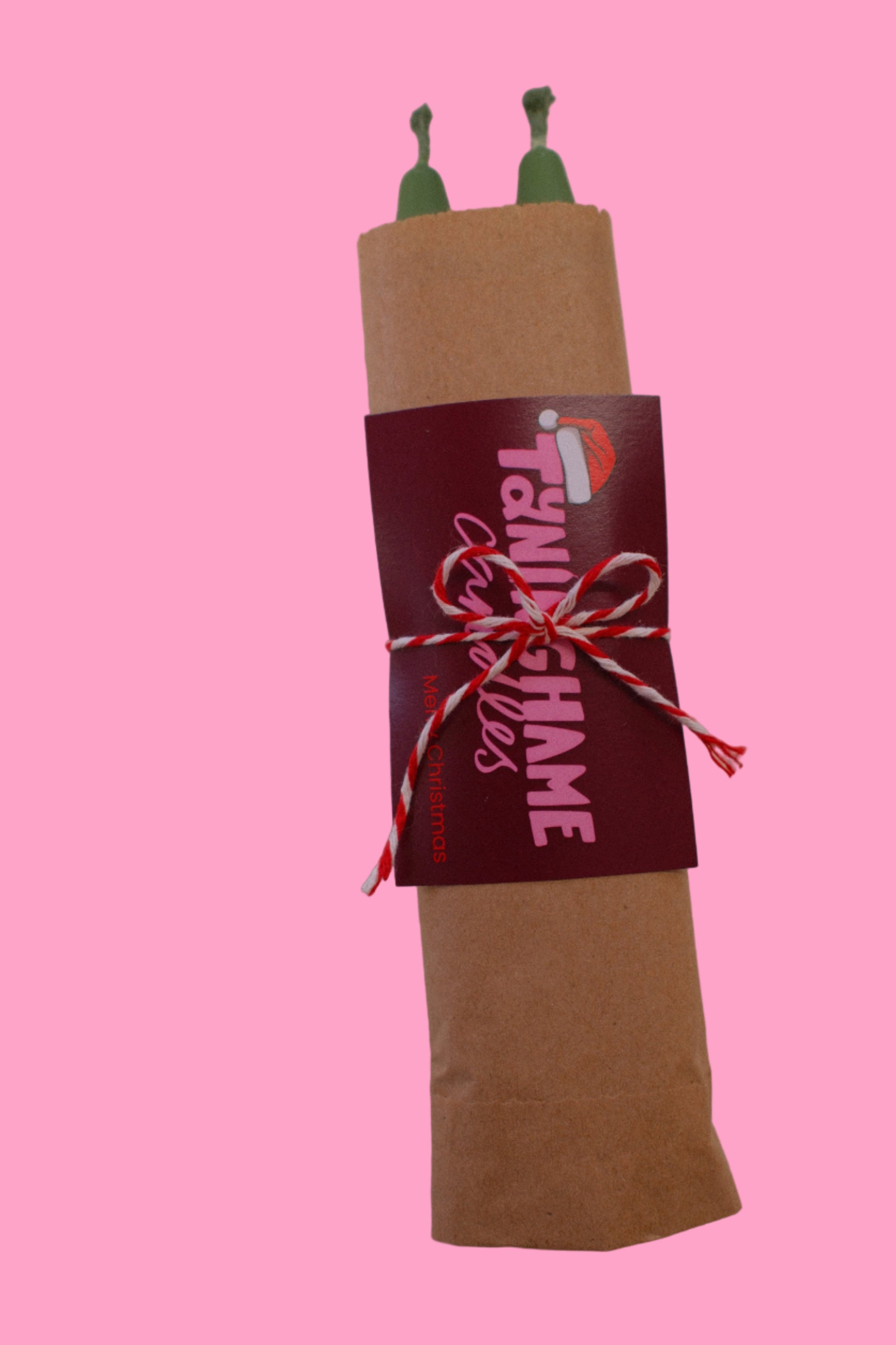 Enjoy candle season with the 'Forest walks'. This classic pair of taper candles come in three tones of gold and greens.